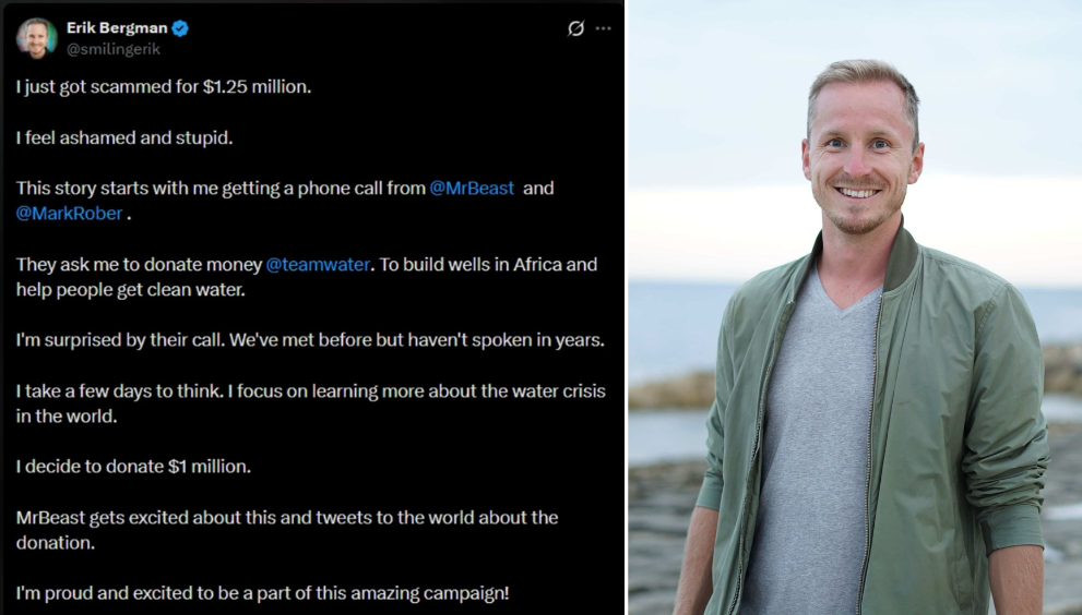 Последние несколько лет Эрик Бергман усиленно занимался благотворительностью, помогая бедным в Африке через свою платформу Great.com, поэтому предложение от MrBeast его сразу же заинтересовало. Спустя несколько дней размышлений Бергман согласился поучаствовать в добром деле, пожертвовав $1 млн.