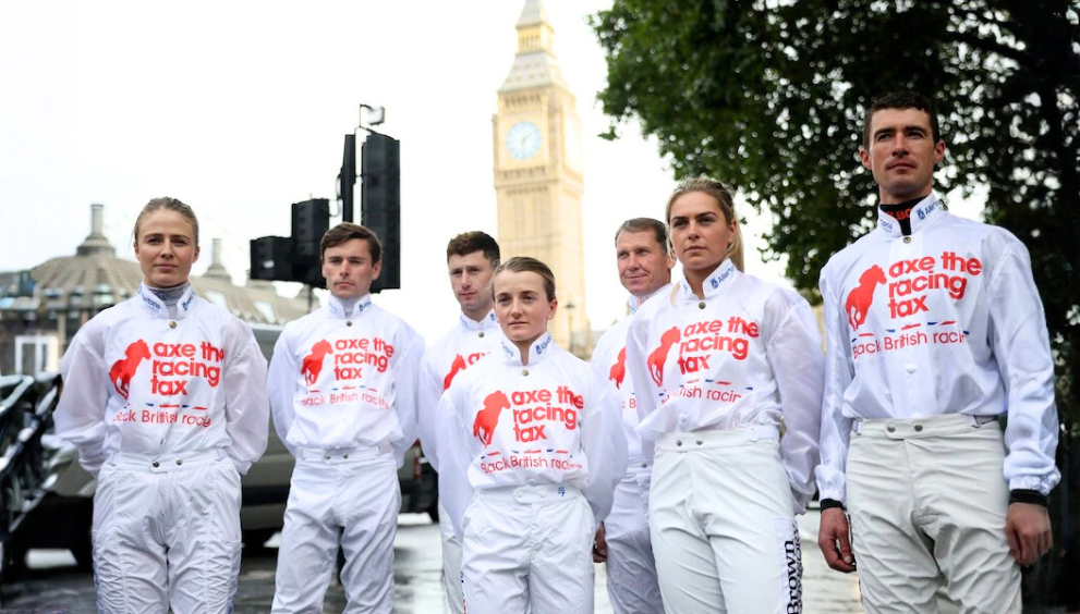 На фото: Ранее британские жокеи провели акцию протеста против возможного увеличения налогов на индустрию скачек
